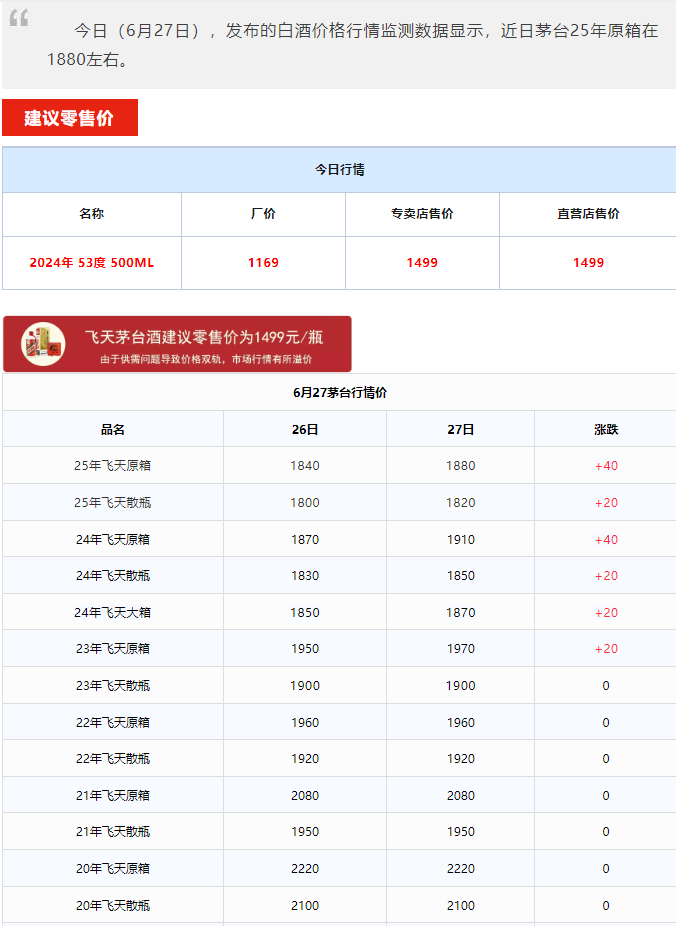 6月25日,時(shí)隔七年,行情價(jià)回落至 1800元 ,電商價(jià)格最低已至 1700元 。比起月初跌價(jià)達(dá)300元/瓶!引發(fā)跨圈震動(dòng),多家媒體唱衰茅臺(tái)“崩盤”。