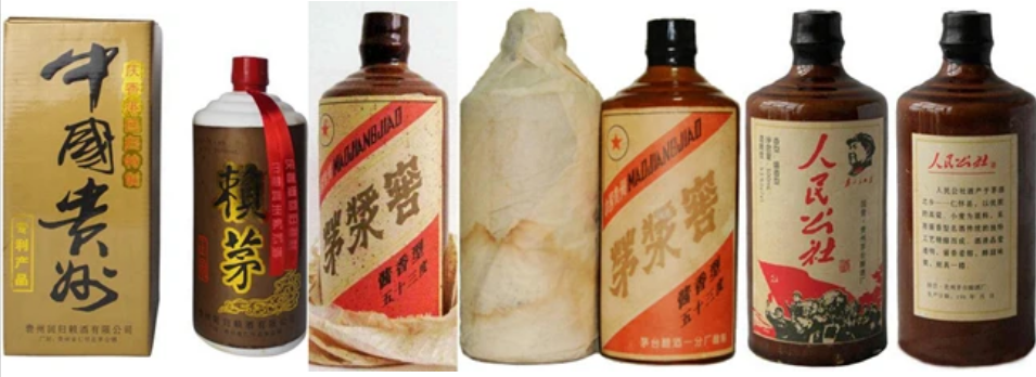 造型復(fù)古、價(jià)格低廉,印刷的日期通常以上世紀(jì)80年代為主,比如茅漿窖、80年代賴茅、天下為公、人民公社、開國大典、為人民服務(wù)、大中國、上山下鄉(xiāng)、改革開放酒等。