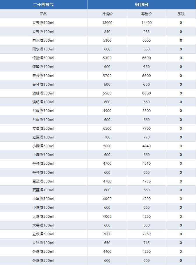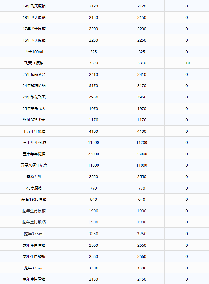 據(jù)酒類行情監(jiān)測平臺紅色壹號酒業(yè)數(shù)據(jù),9月7日,25年飛天茅臺(53度/500ml)批發(fā)參考價散瓶報1820元/瓶,較前一日跌10元;五星70周年紀念報10350元/瓶,較前一日跌650元,單日跌幅5.91%;生肖蛇原箱(簡稱“蛇茅”)報1900元/瓶,較前一日跌10元,再創(chuàng)上市以來新低,較年初剛上時的高位宣告“腰斬”。